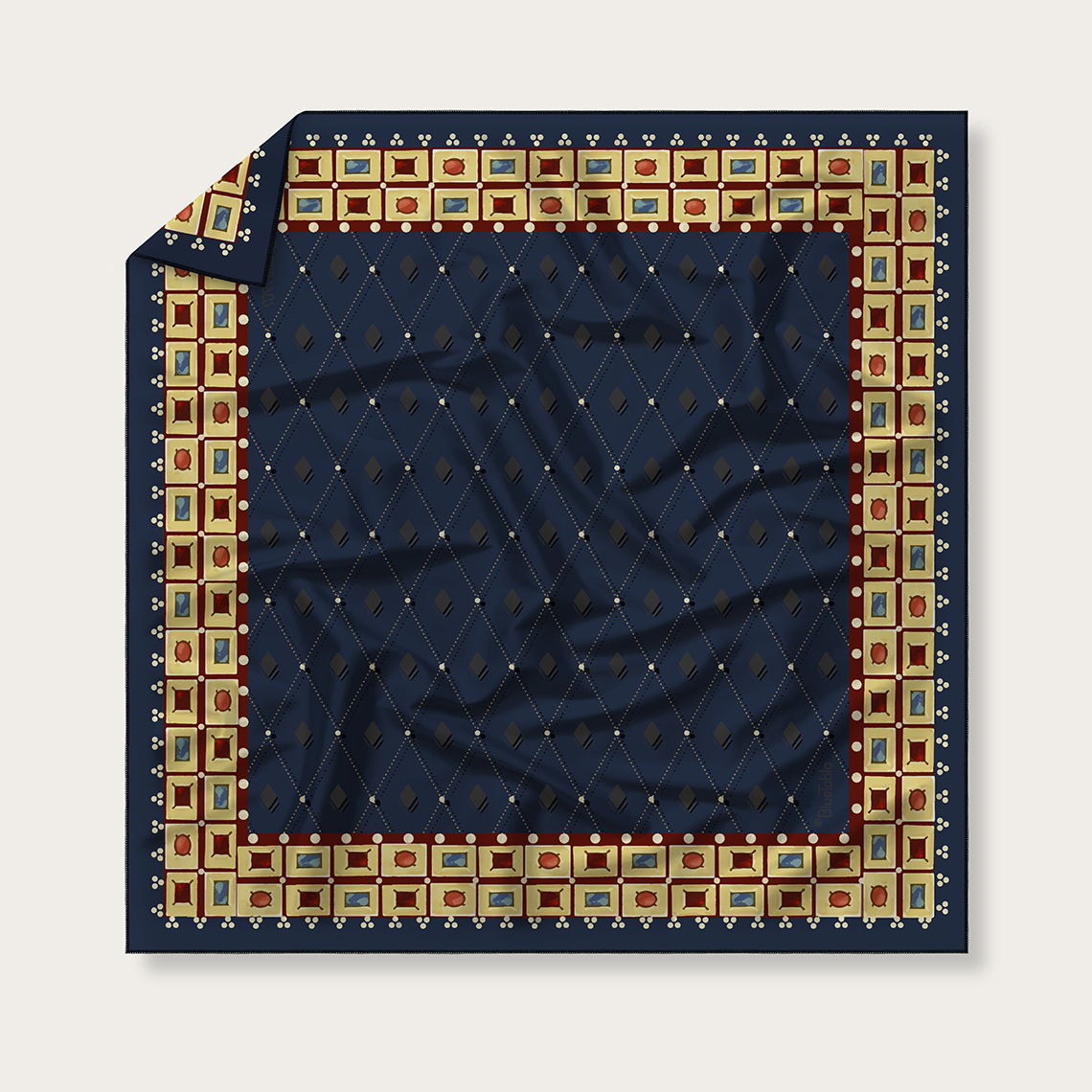 100% თუთის აბრეშუმი სქელი აბრეშუმი (16მმ) ორმხრივი პრინტი ზომა: 65x65სმ ან 89x89სმ მოვლა: ქიმწმენდა ხელით შემოკერილი გვერდები