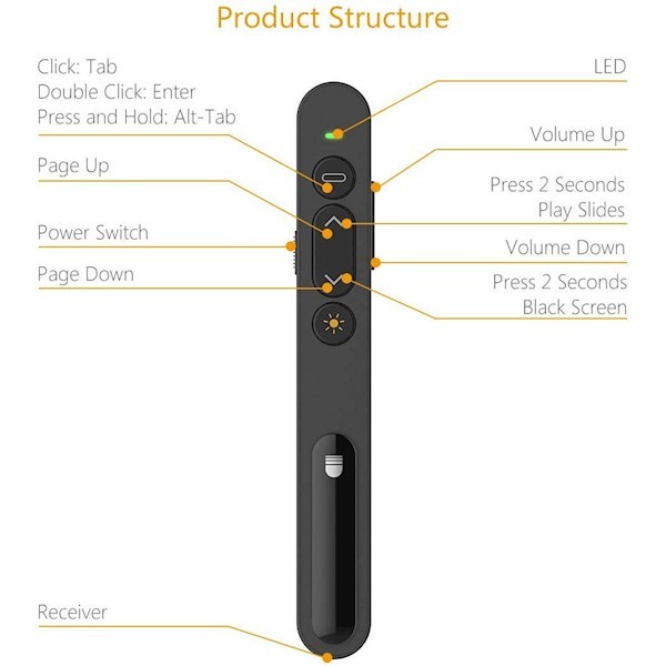პრეზენტერი - Doosl DSIT0011 Wireless Presenter 2.4GHz Powerpoint Presentation Remote Control