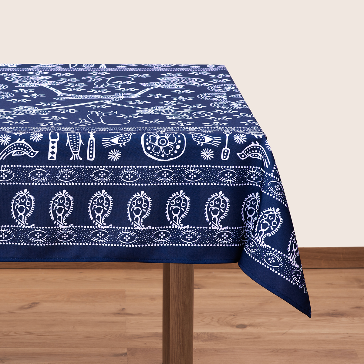"ლურჯ სუფრას გვიანდელი ფეოდალური ხანის საქართველოს მოსახლეობის თითქმის ყველა ფენა იყენებდა. აღმოსავლეთ საქართველოს მთიანეთში მას სათემო დღესასწაულებზე საწესო პურობისთვის შლიდნენ. XIX საუკუნისთვის ლურჯი სუფრა თბილისის თითქმის ყველა ოჯახში იშლებოდა, მაგრამ ძირითადად დღესასწაულებზე. სუფრის ცენტრში აუცილებლად იყო განთავსებული მრგვალი მედალიონი, როგორც მარადიული წრებრუნვის სიმბოლო. სუფრის ძირითადი დეკორატიული მოტივები - ჯვრები, თევზები, ჩიტები ირმები და სხვა. მოგვიანებით სუფრებზე დანა-ჩანგალი, კოვზები, ქართულ კაბასა და ჩოხა-ახალუხში გამოწყობილი ადამიანების გამოსახულებებიც გაჩნდა."