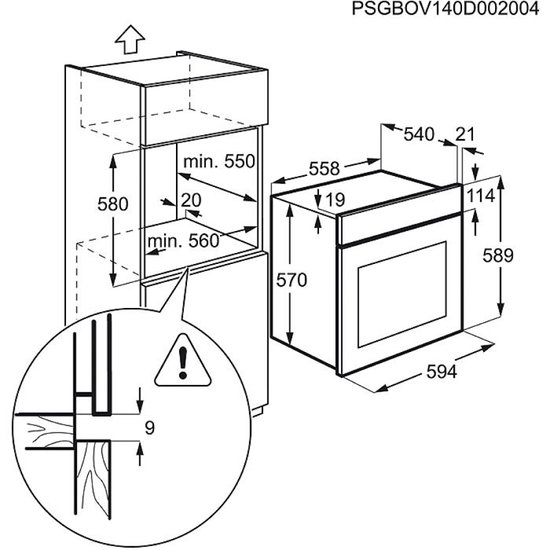 • ჩასაშენებელი ჭრილის ზომა: 59.3 x 56 x 55 სმ