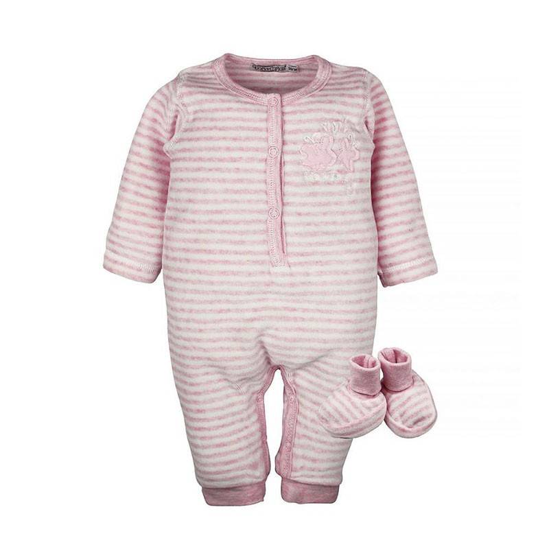 რბილი და თბილი ბოდე დამზადებულია ხავერდის მასალისაგან. ბოდე მკერდის და უბის არეში იკვრება ღილაკებით, რაც ამარტივებს ჩაცმა გახდის პროცესს. ხავერდის ფაჩუჩები კი უზრუნველყოფს თქვენი პატარას ფეხების სითბოს.