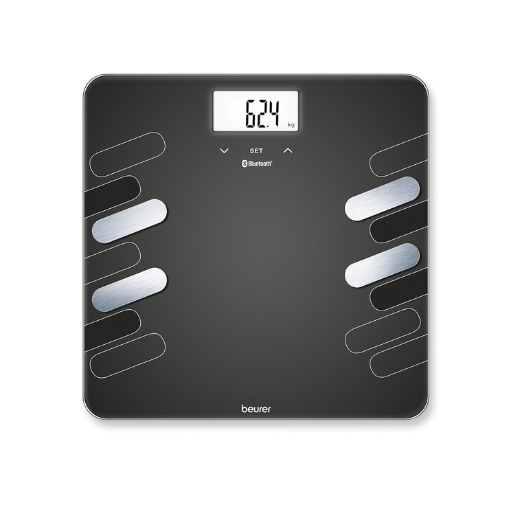 - სასწორი აჩვენებს - წონას, ცხიმის, წყლის, კუნთების % შემცველობას, ძვლის მასასა და BMR კალორიებს