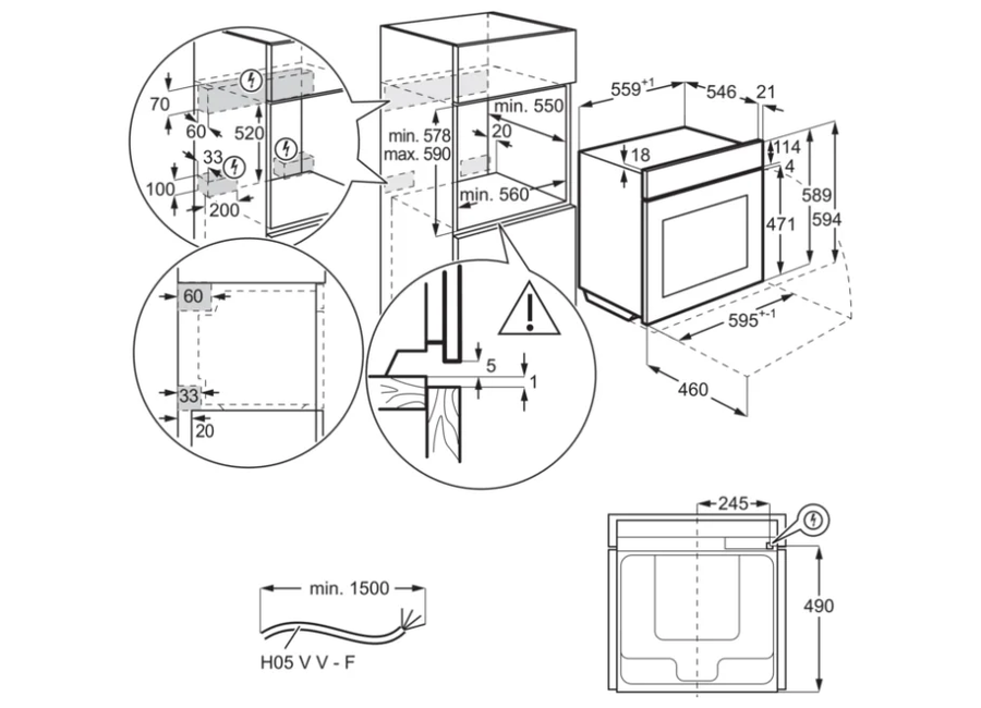 - ჩასაშენებელი ზომა: 560 x 600 x 550
