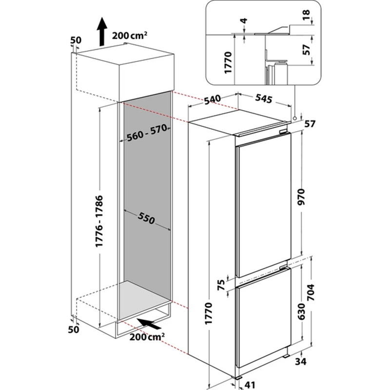 Whirlpool ჩასაშენებელი მაცივარი WHC18 T311, No Frost