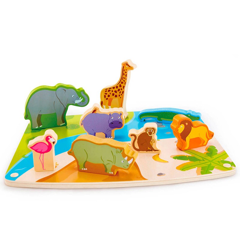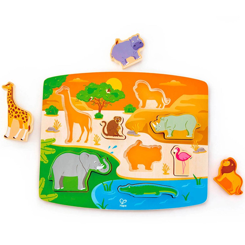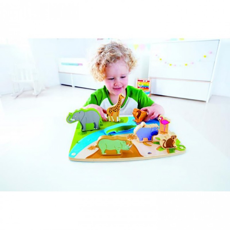 ხის სათამაშო გარეული ცხოველების პაზლი და ფიგურები – Hape